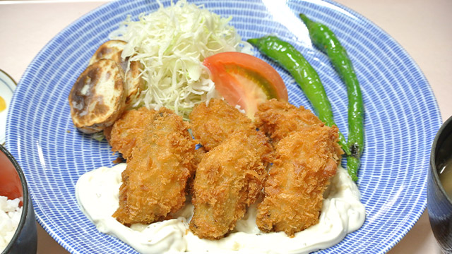 広島産カキを使用した冬の人気メニューです。タルタルソースをたっぷりつけて。